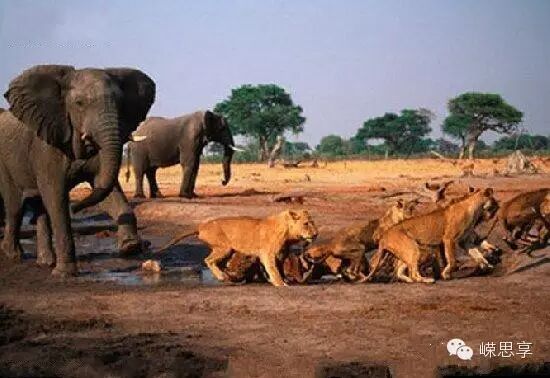 大象平时看起来很温和,但是因为力量很大,甚能将树木连根拔起,因此连狮子老虎都怕它三分。大象轻易不发怒,但是发怒起来场景很有点恐怖的意味。有段话很形象描写了愤怒爆发后的象群:“在非洲的大草原上如果见到羚羊在奔跑,有可能是狮子或老虎来了;但如果见到狮子和老虎都在朝同一个方向在奔跑,那就是象群发怒了!”场景如下图: